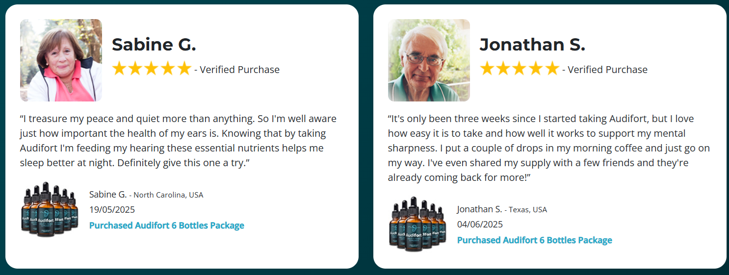 Audifort is the secret formula to enhance your hearing, sharpen your mental focus, and boost your energy! Join the thousands of satisfied users who are enjoying better ear health, mental sharpness, and all-day energy.